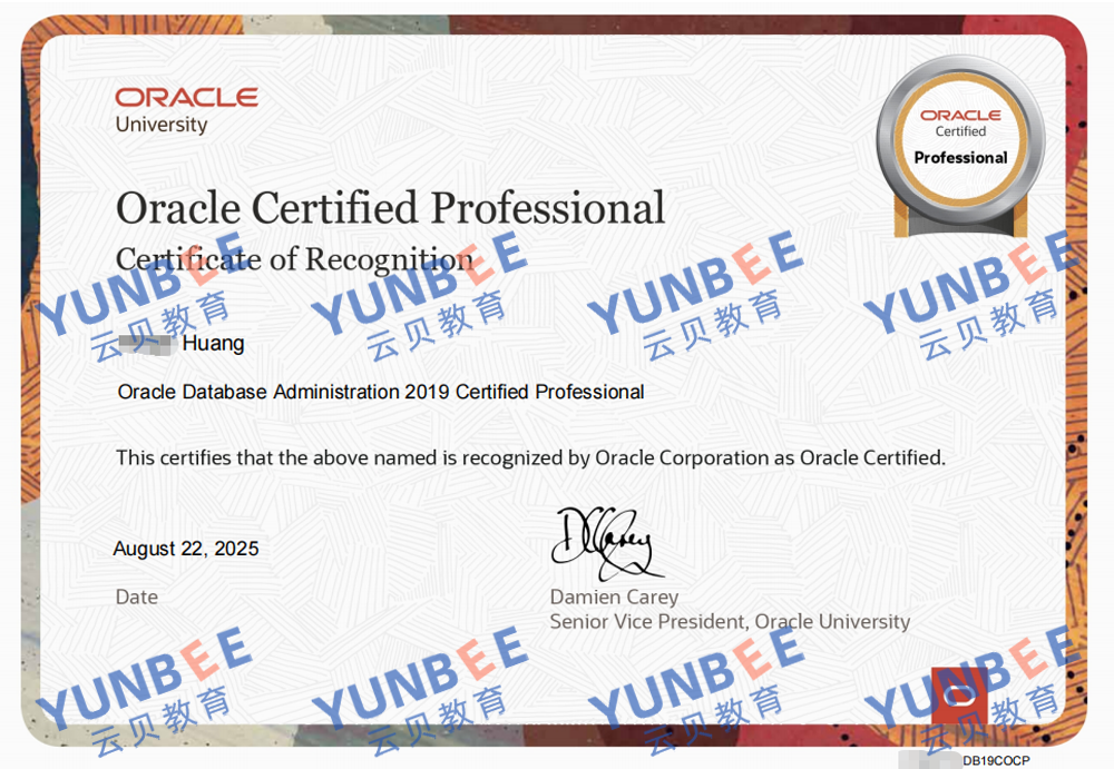 【喜报】恭喜Wei Huang同学通过Oracle 19c OCP考试