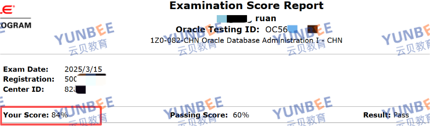 Oracle 19c OCP 成绩展示