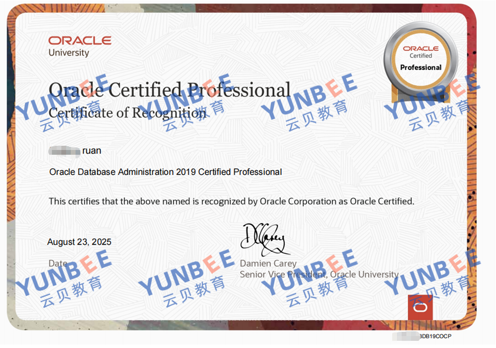 Oracle 19c OCP证书展示