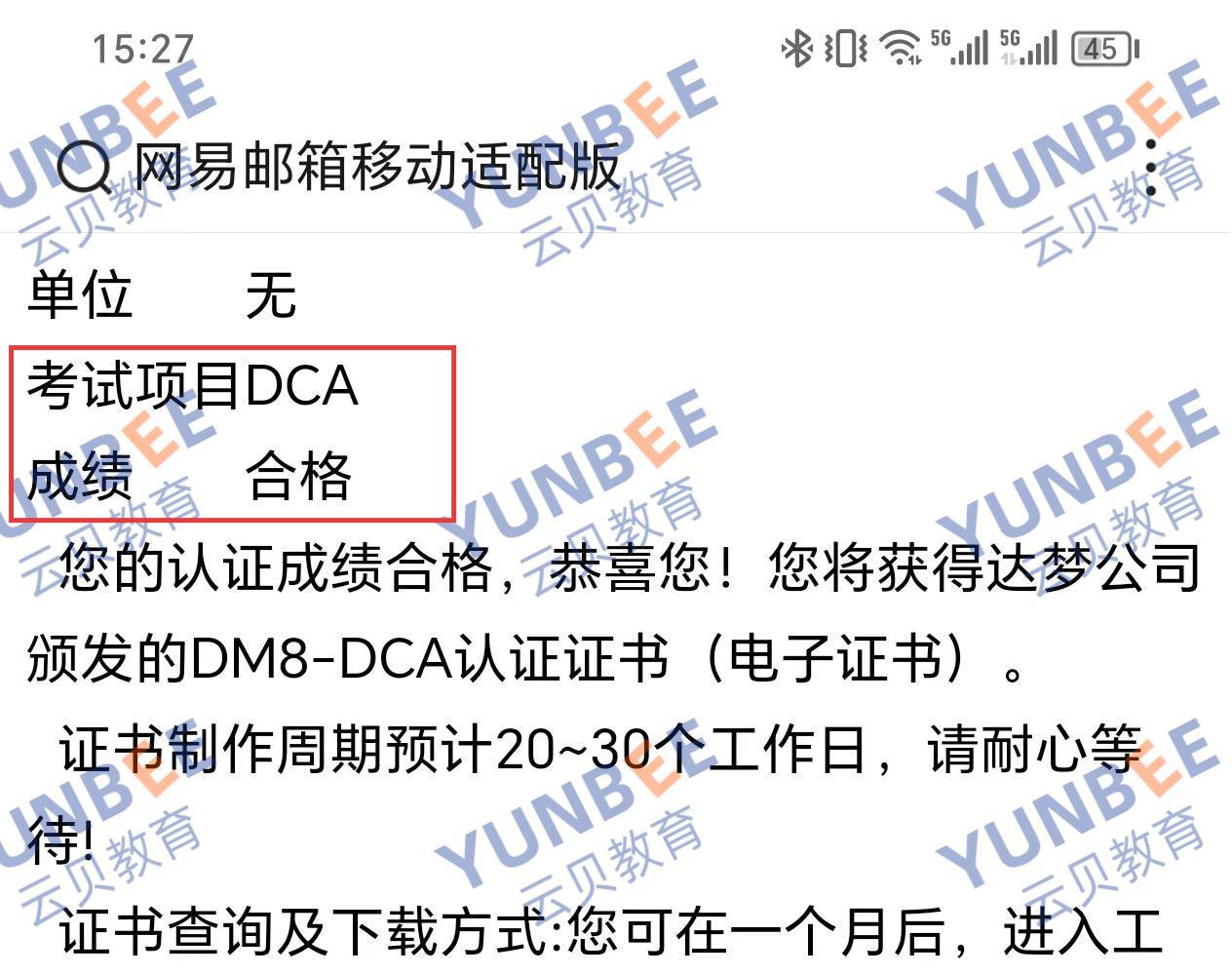 【喜报】恭喜JuDe Liu同学通过达梦DM8 DCA考试