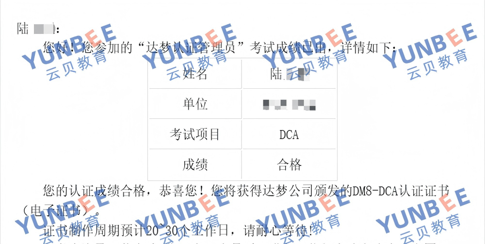 【喜报】恭喜JiaKan Lu同学通过达梦DM8 DCA考试