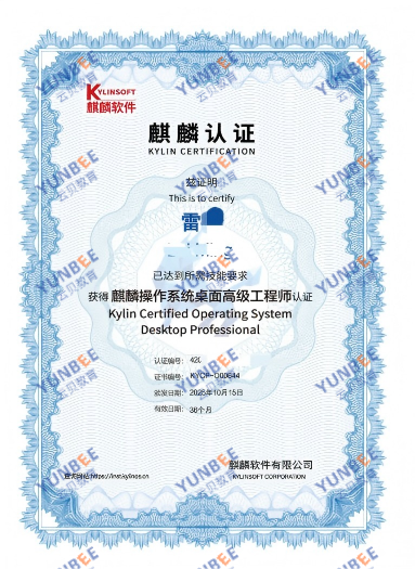 麒麟操作系统桌面高级工程师 KYCP证书展示