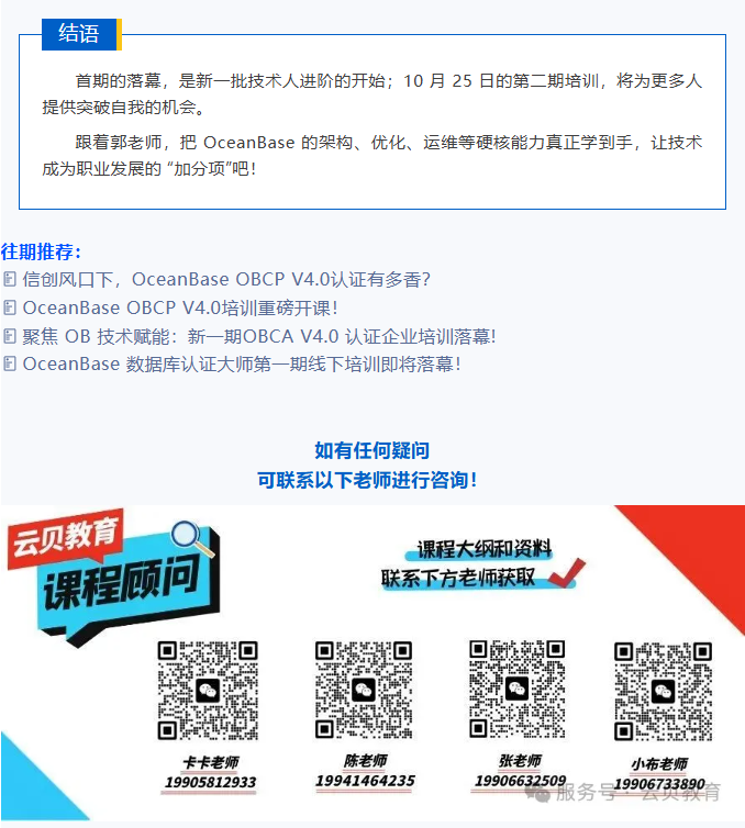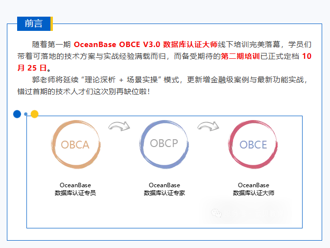 OceanBase OBCE V3.0 数据库认证大师第二期培训10月25日即将开启!!!