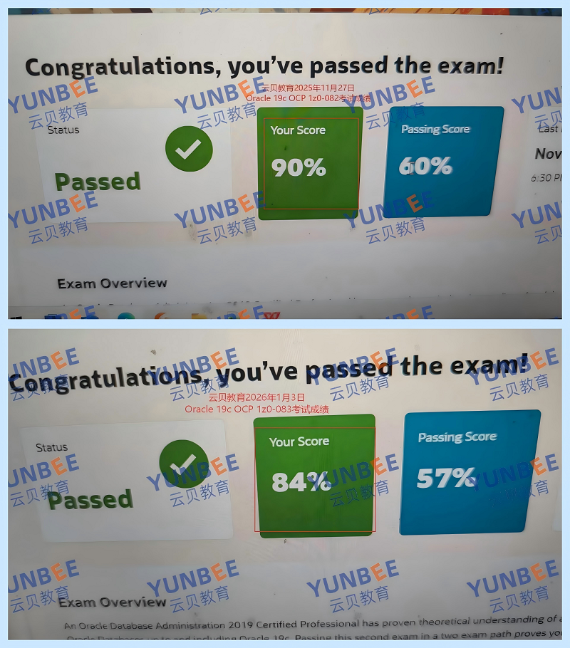 Oracle 19c OCP成绩展示: