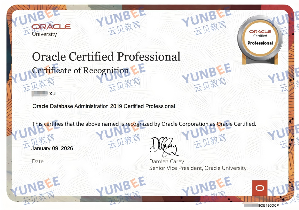 Oracle 19c OCP 证书展示: