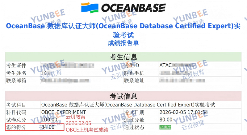 OceanBase OBCE V3.0 上机成绩展示: