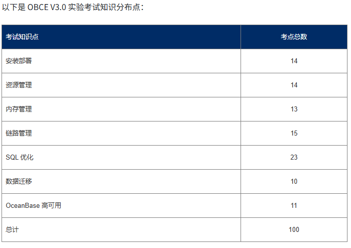 OceanBase OBCE V3.0 考试详情