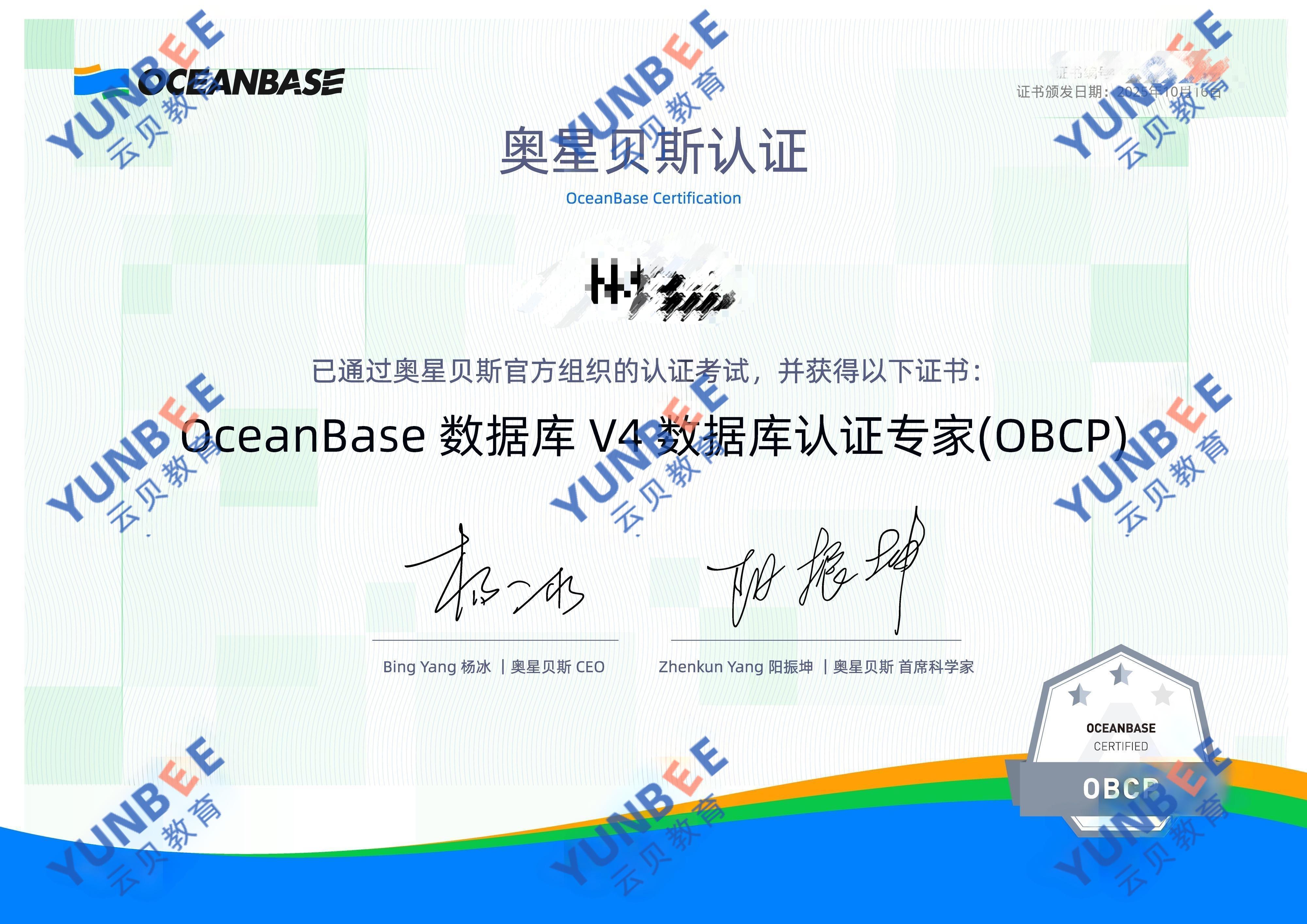 而云贝教育学员王同学,凭借在云贝系统学习OCP(Oracle认证专家)和OBCP(OceanBase数据库专家)课程,成功拿下双证后,顺利斩获心仪优质Offer,成功突围数据库职场竞争,完成从备考到就业的完美蜕变!