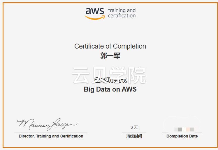 还包括如何创建大数据环境、如何结合使用 Amazon DynamoDB、 Amazon Redshift Amazon