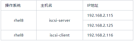 由于我们没有存储设备,所以选择使用ISCSI块存储服务来模拟存储设备,通过在iscsi-server主机上绑定两个ip地址,来模拟存储设备到主机client的双链路。