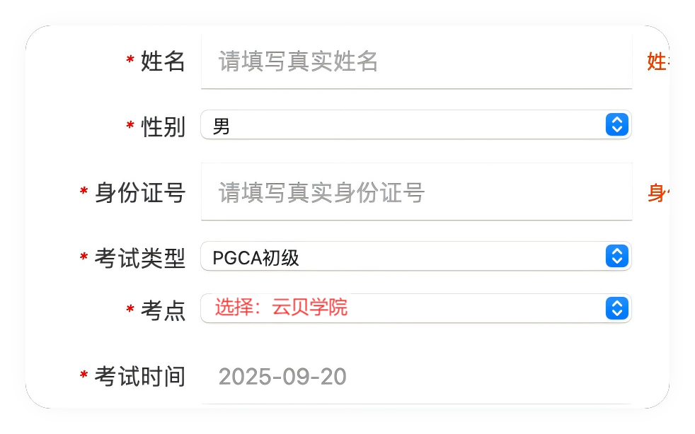 (二)第二步(报名):登录/注册后进入考试报名页面,填写报名信息