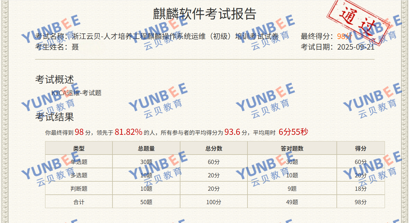 【喜报】恭喜Jiangjun Nie同学通过麒麟操作系统运维工程师 KYCA 认证