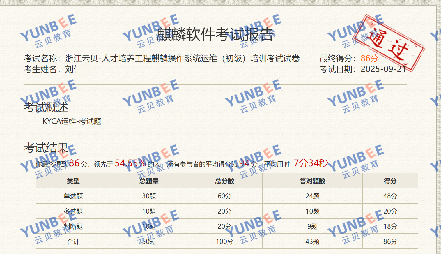 【喜报】恭喜Wei Liu通过麒麟操作系统运维工程师 KYCA 认证