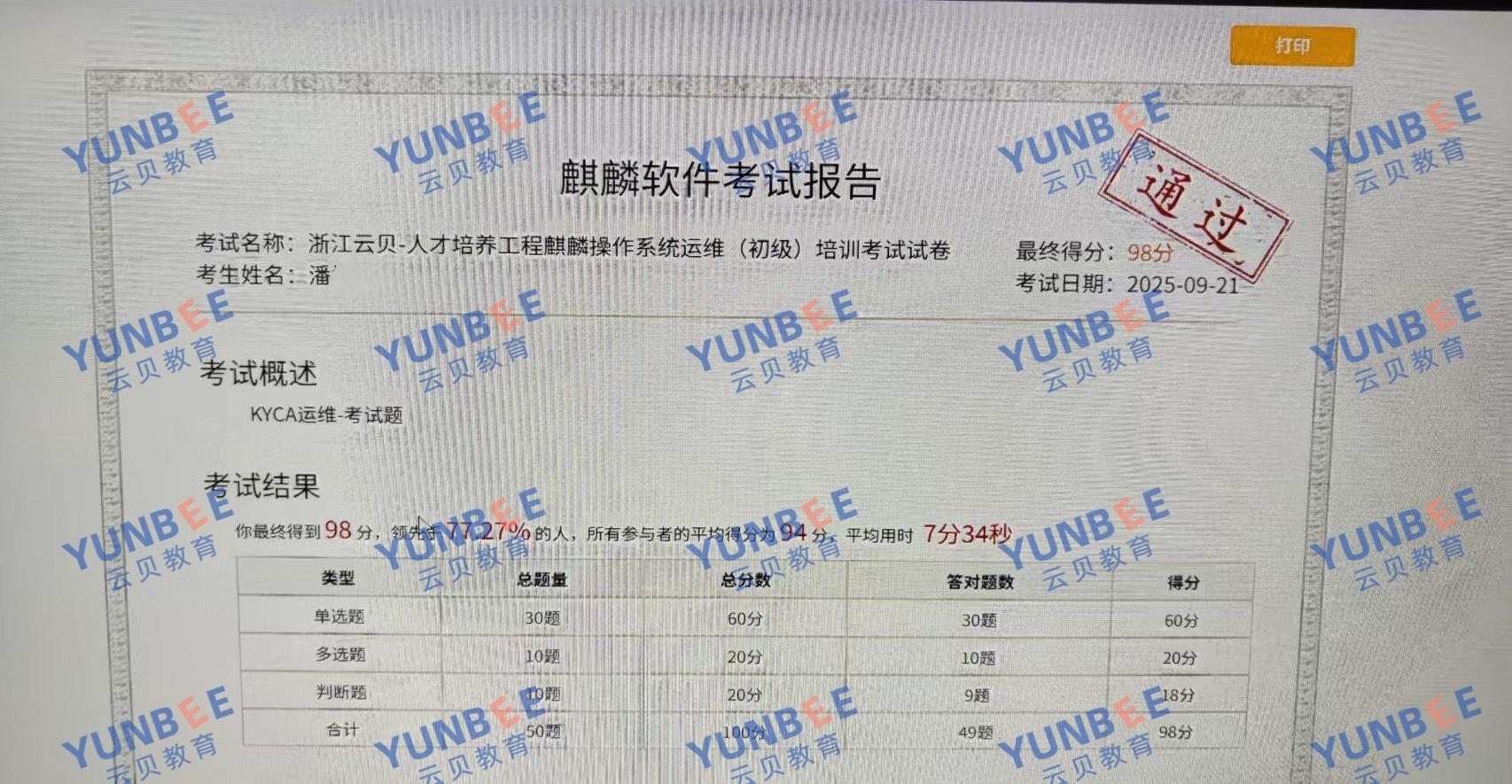 【喜报】恭喜Kun Fan同学通过麒麟操作系统运维工程师 KYCA 认证
