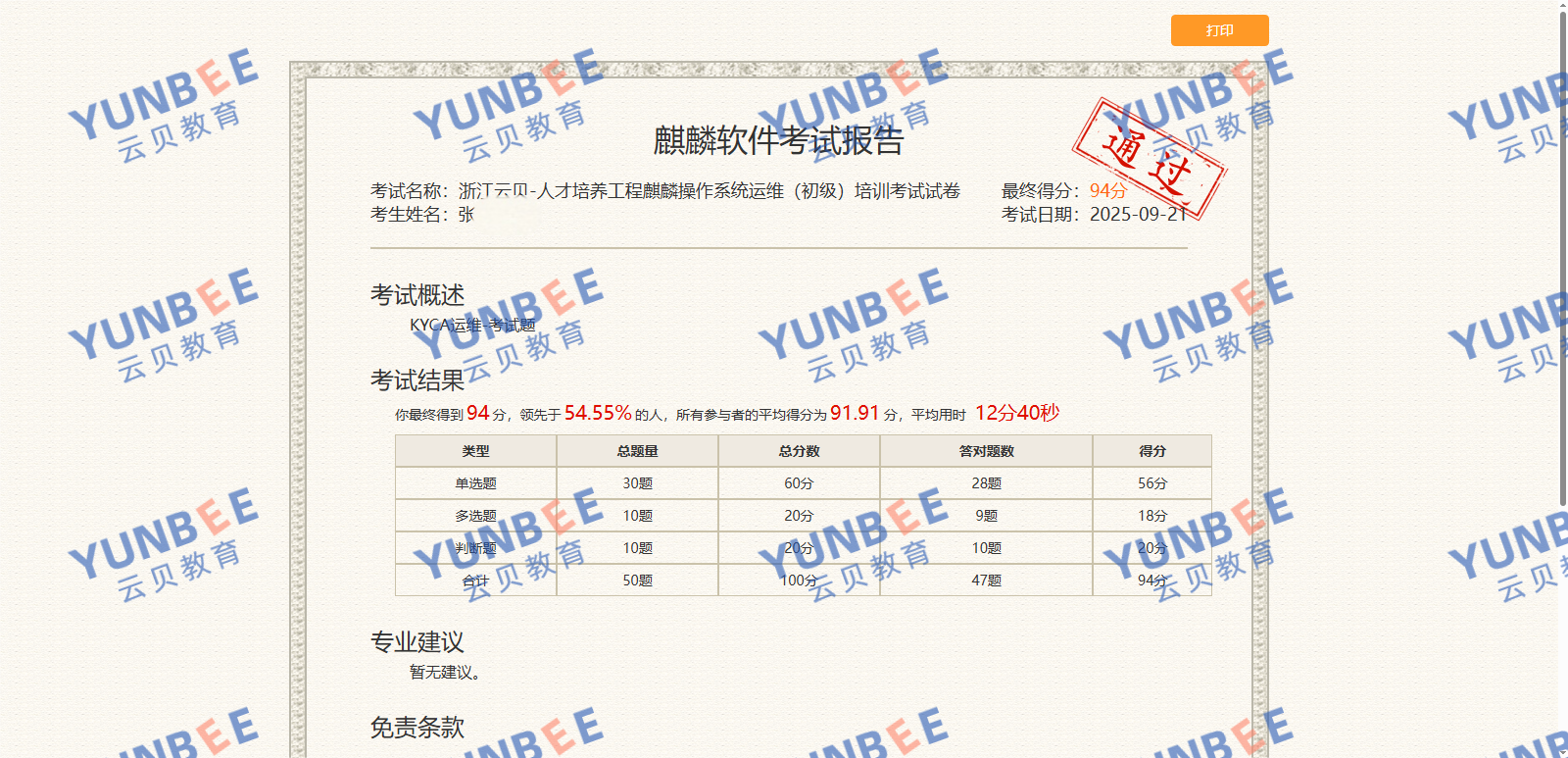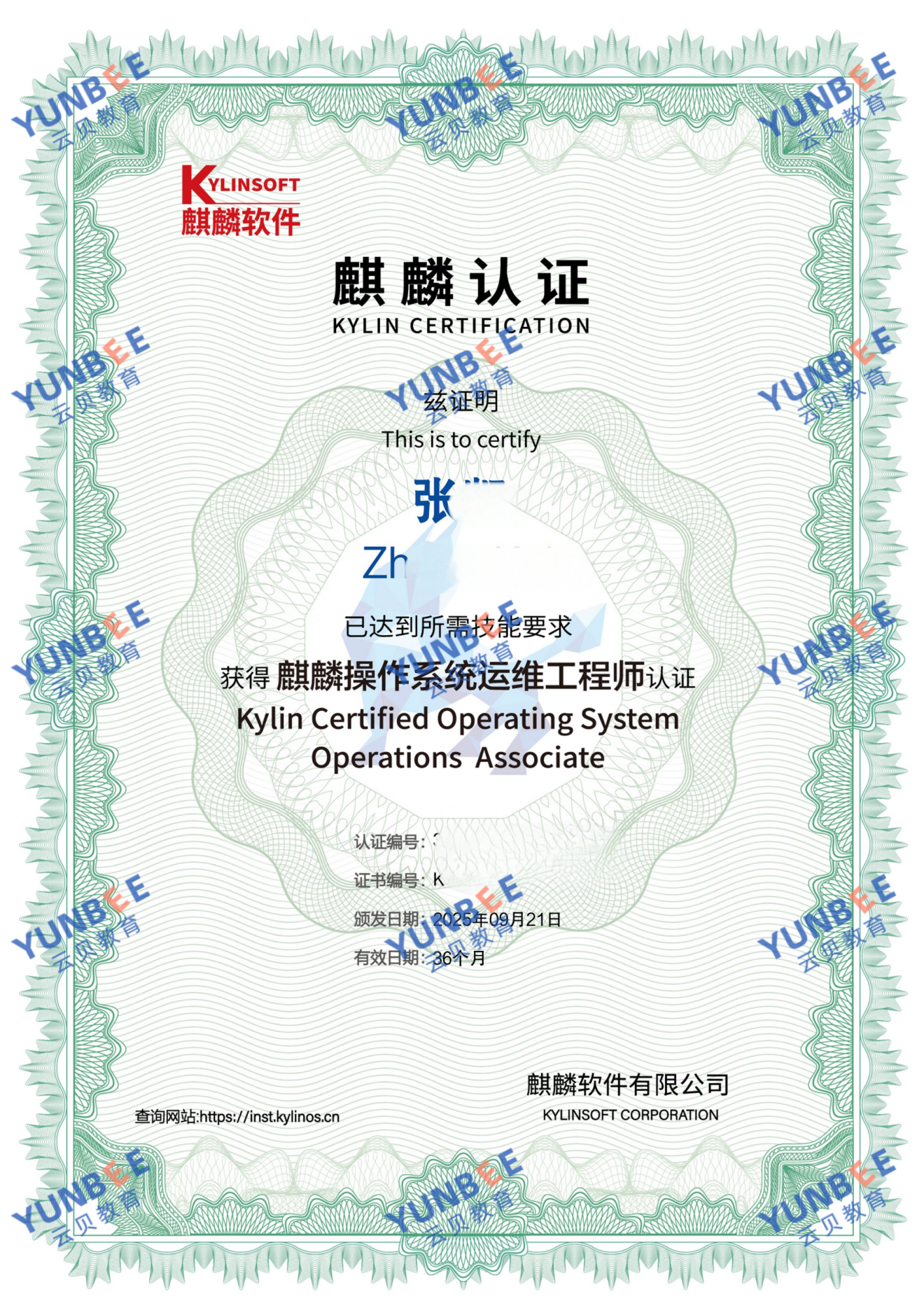 【喜报】恭喜Kai Zhang同学通过麒麟操作系统运维工程师 KYCA 认证