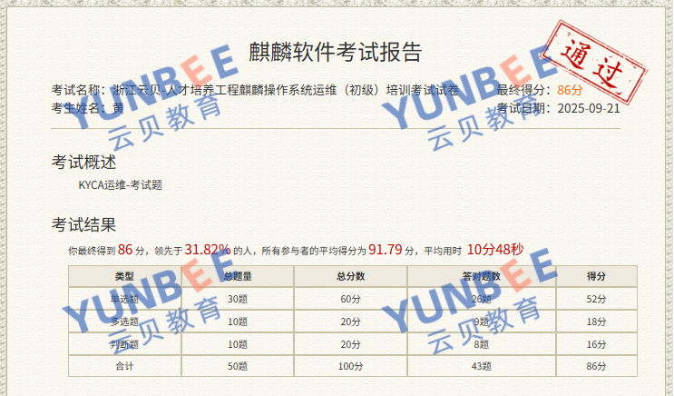 【喜报】恭喜Shuo Huang同学通过麒麟操作系统运维工程师 KYCA 认证