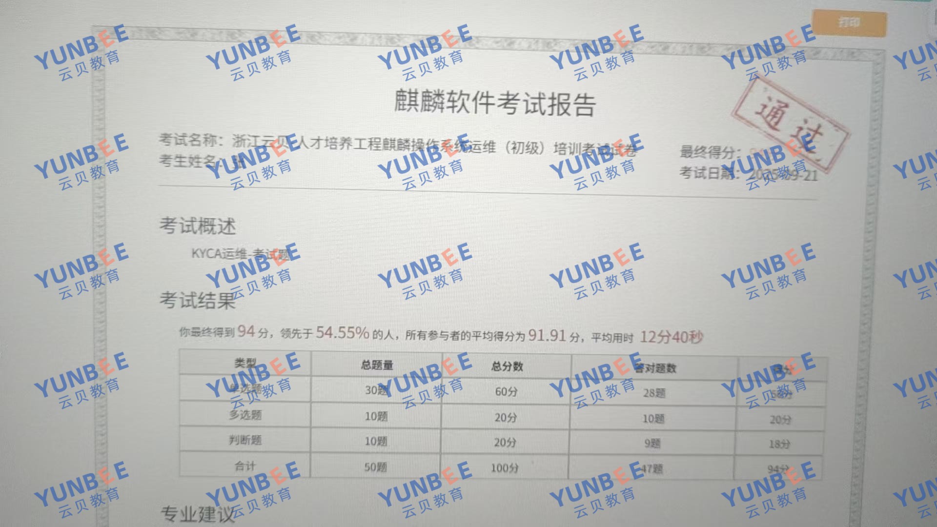 【喜报】恭喜Jing Zhang同学通过麒麟操作系统运维工程师 KYCA 认证