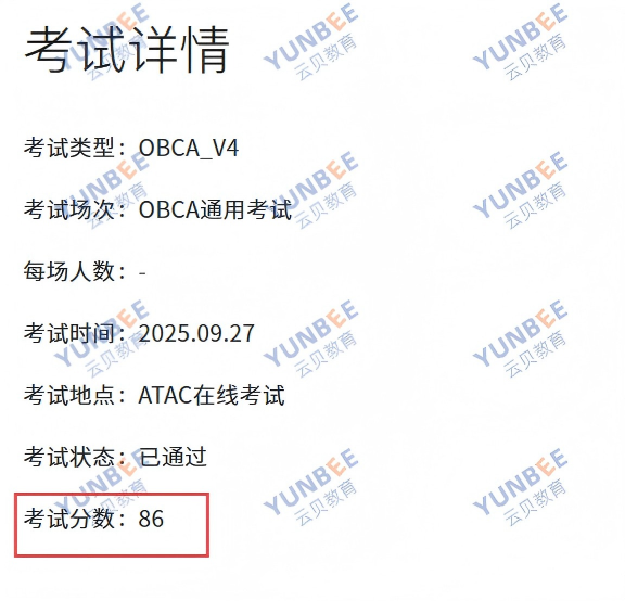 OBCA V4.0的考试时间为60分钟,考试过程中无法暂停,请提前安排好时间。OBCA的考试采用线上考试,奥星贝斯授权ATAC为考生提供报名、缴费、考试等服务。