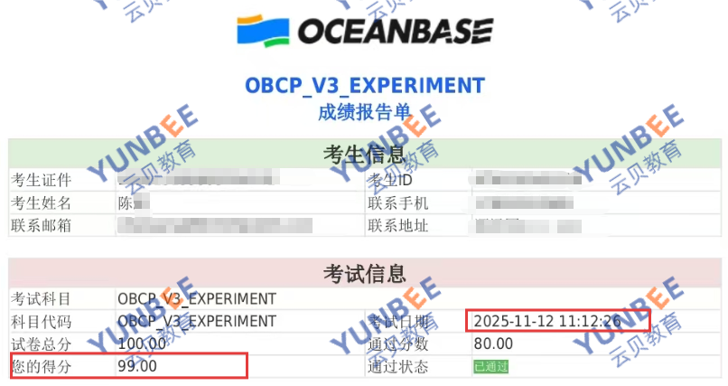 【喜报】恭喜Peng Chen同学通过OceanBase OBCP V3.0 考试