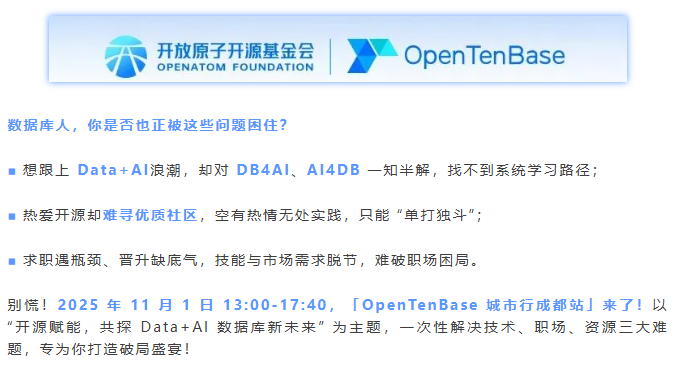 【成都站】OpenTenBase城市行:Data+AI+开源,解锁数据库新未来!