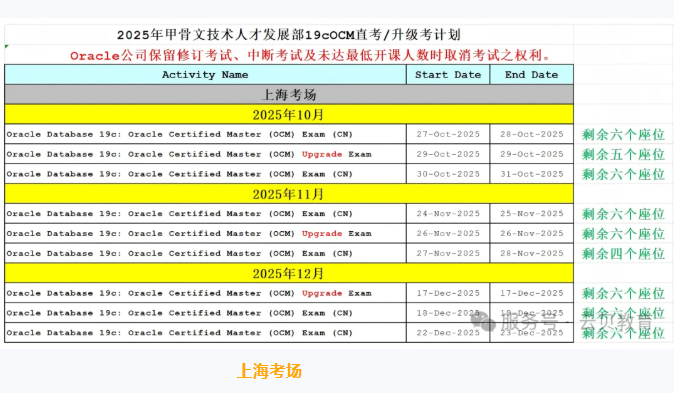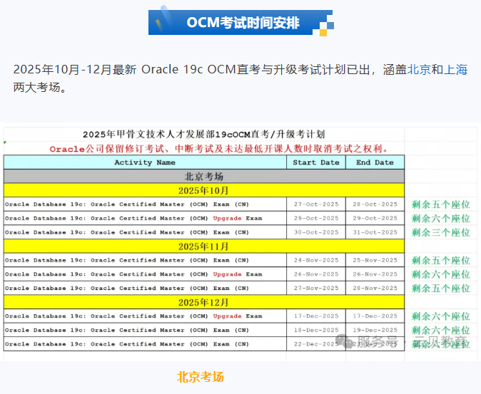 2025年10-12月OCM最新考试时间安排!
