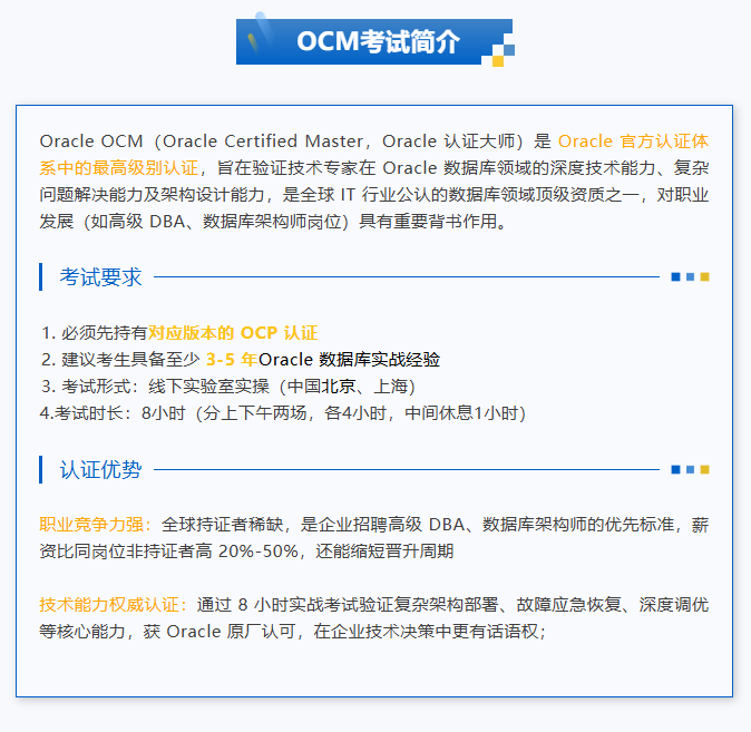 · Oracle 19c OCM认证大师培训