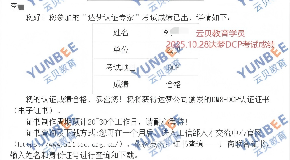 【喜报】恭喜FuBao Li同学通过达梦DM8 DCP考试