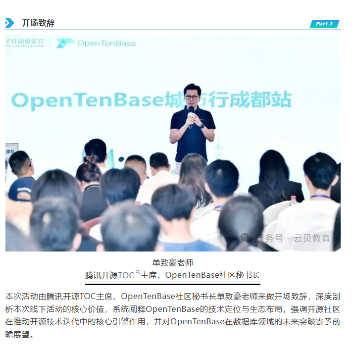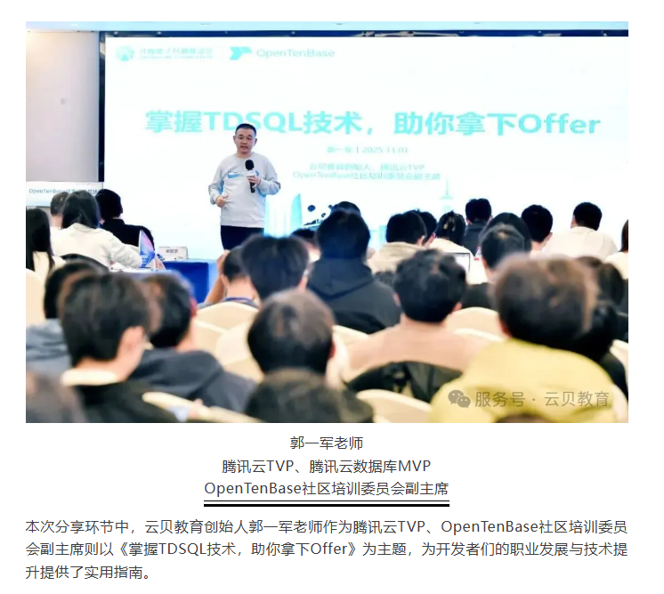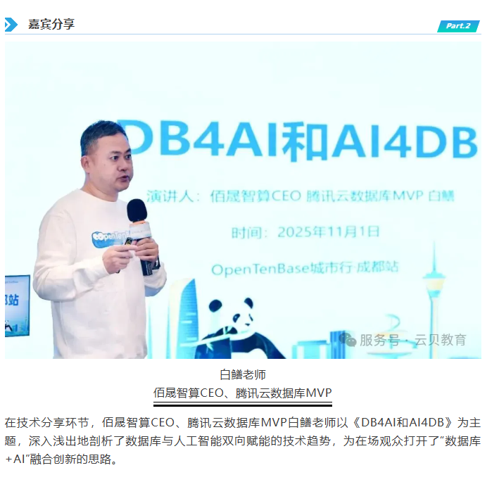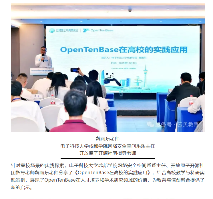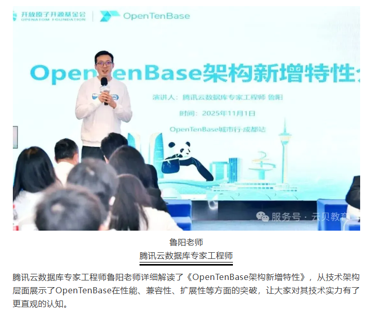 2025 年 11 月 1 日,OpenTenBase城市行成都站的技术盛宴已圆满收官!