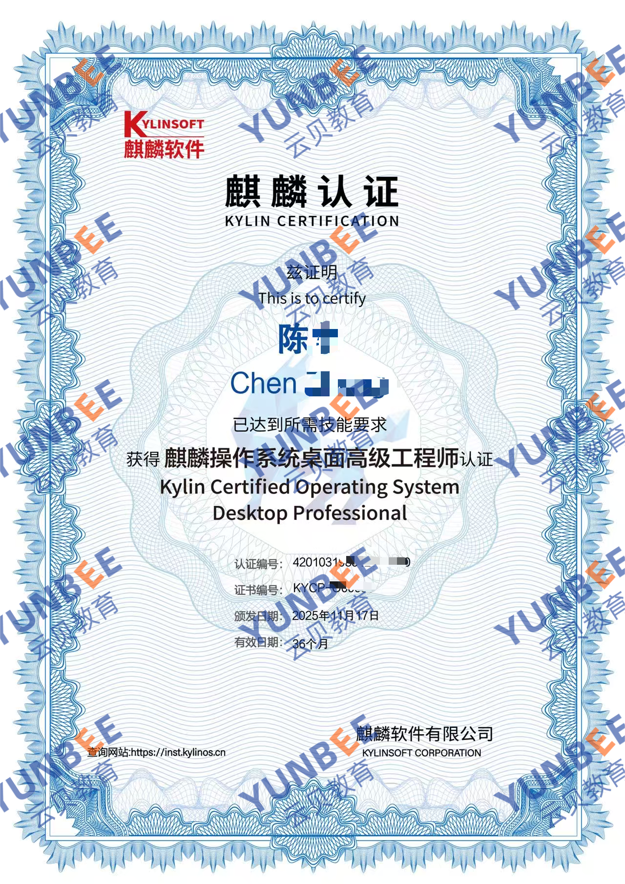 麒麟操作系统桌面高级工程师 KYCP证书展示