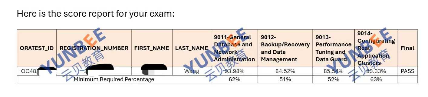 Oracle 19c OCM直考成绩展示