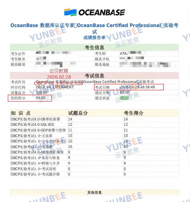 以下是OBCP V4.0 笔试考试的知识点分布: