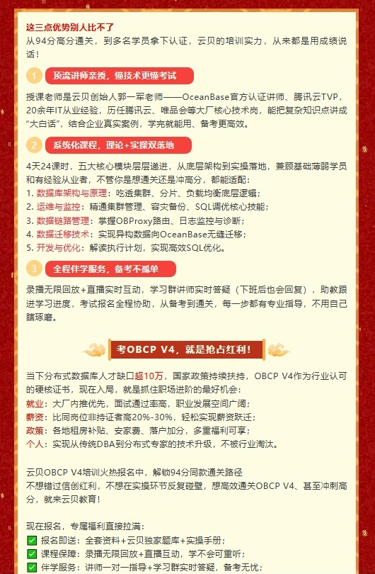 · OceanBase OBCP V4.0 数据库认证专家