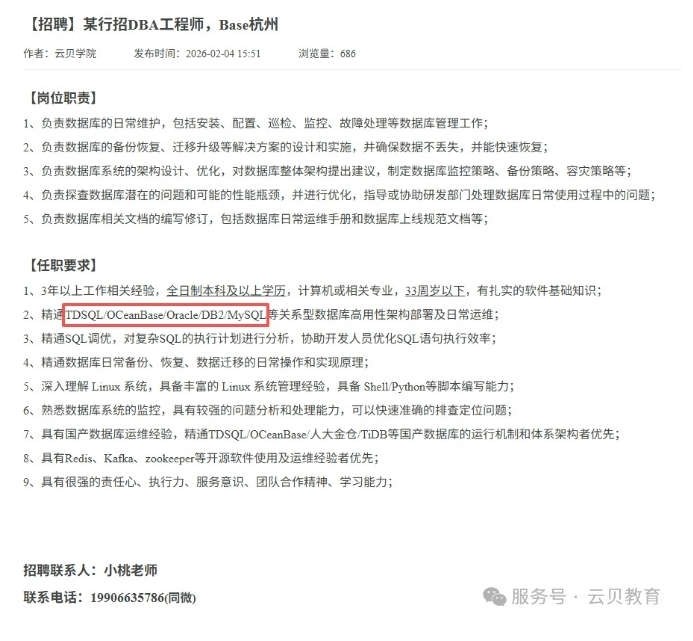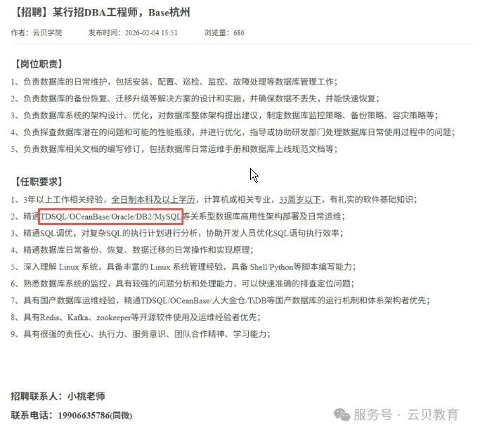 · 数据库交付运维工程师-腾讯云TDSQL(MySQL版)
