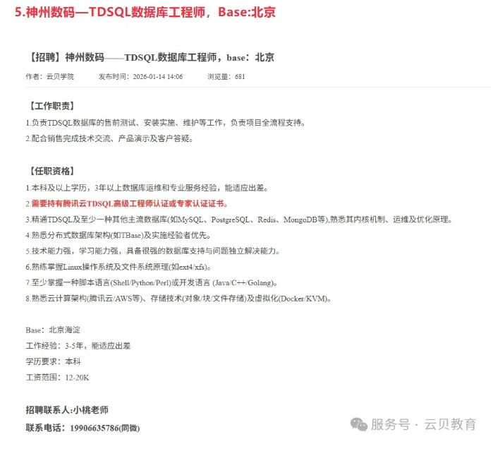 · 数据库交付运维专家-腾讯云TDSQL(MySQL版)