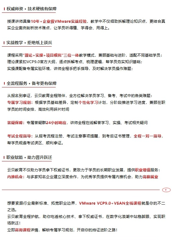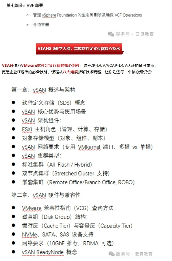 解锁VMware核心技能!云贝教育VCP9.0+VSAN8.0全栈课程重磅上线!
