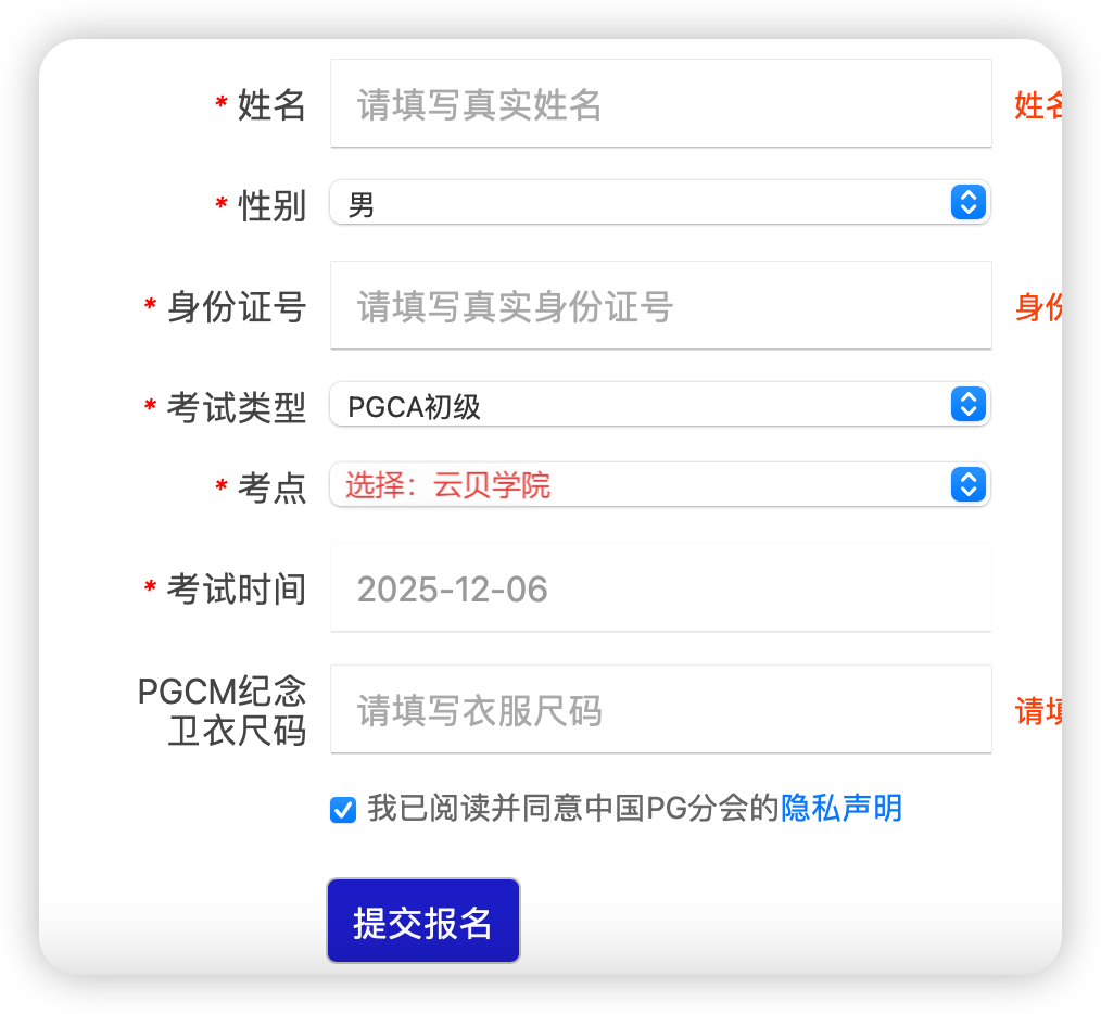 (二)第二步(报名):登录/注册后进入考试报名页面,填写报名信息